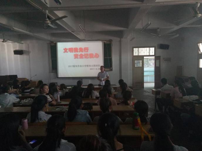 2017年9月28日下午4:20伟德体育伟德体育官方网站2017级小学教育专升本班级开展了“文明我先行,安全记我心”的主题班会,此次班会由辅导员赵斌老师主持,2017级小学教育专升本班的全体同学积极参与此次班会。
