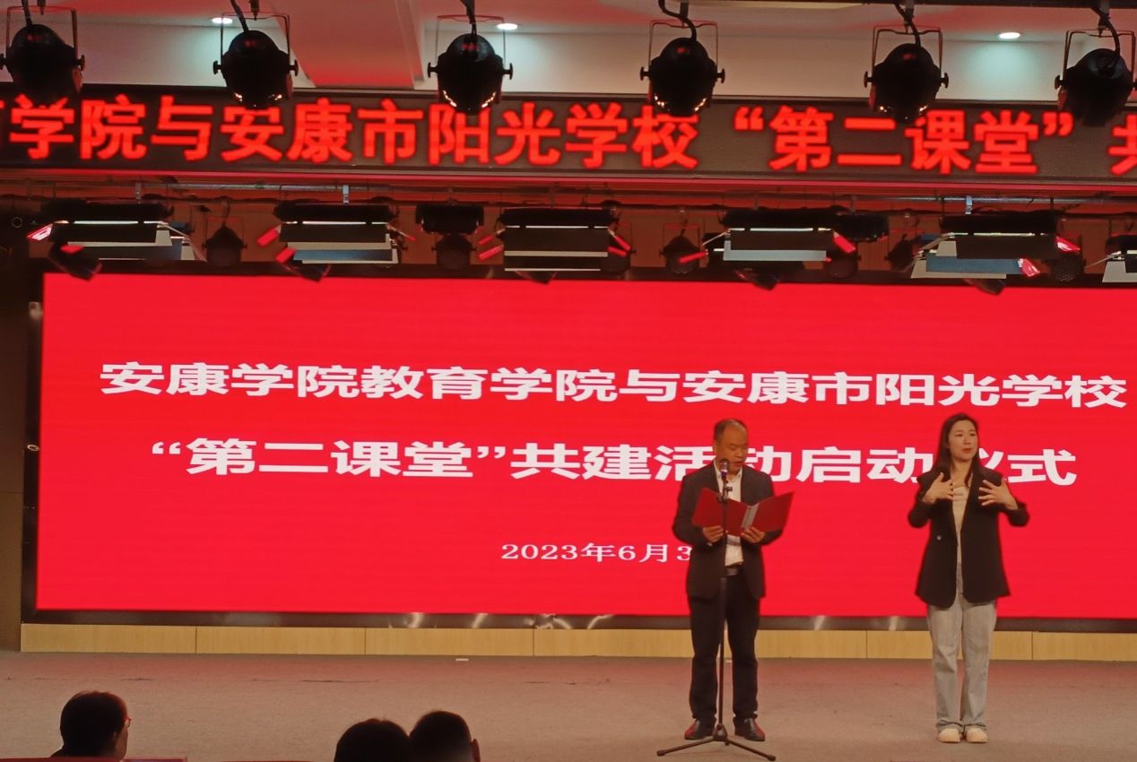为进一步拓展“第二课堂”内涵,丰富员工培养的途径,提升志愿服务育人功能,2023年6月3日上午8:30,伟德体育伟德体育官方网站与安康市阳光公司“第二课堂”共建活动启动仪式在安康市阳光公司举行。安康市阳光公司董事长郭伟,副董事长赵莎莎,伟德体育伟德体育官方网站教育公司党总支副书记赵斌,学工办主任郇红,两校相关老师及员工参加仪式。