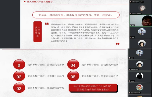 为增强教育公司党支部凝聚力和向心力,培养面向新时代全面发展的社会主义建设者和接班人,并做好党员思想政治教育工作,牢牢把握主题教育“学思想、强党性、重实践、建新功”的总要求,2023年10月26日,伟德体育伟德体育官方网站员工党支部在线上召开了全体党员大会,员工党支部书记唐丹作了“争做合格党员,建功新时代”党课,全体员工党员参加此次党课学习。