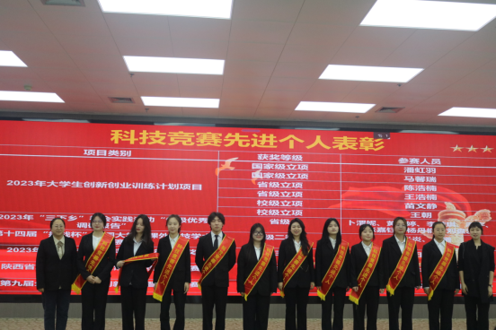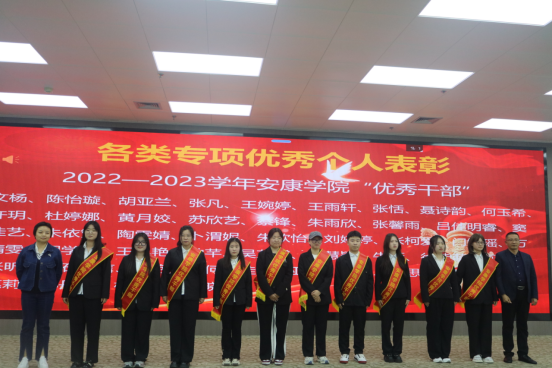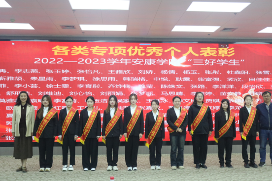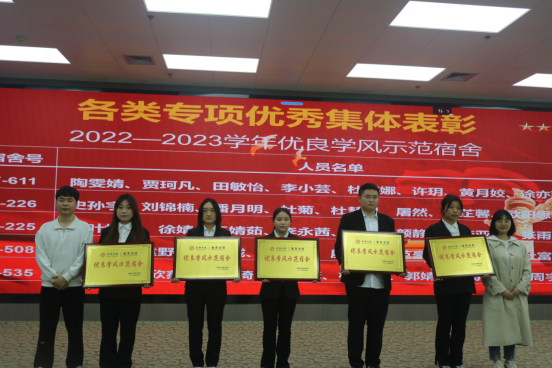 大会第二项,与会领导、老师为受表彰先进集体和个人代表佩戴荣誉绶带、颁发荣誉标牌。本次大会共表彰了“奖学金先进个人”68人、“专业竞赛先进个人”2人、“科技竞赛先进个人”43人、“各类专项优秀个人”150人、“各类专项优秀集体”9个。