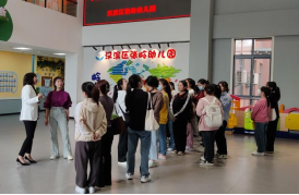 为增进我系与张岭幼儿园的交流与合作,了解幼儿园公司产品工作,同时也为了让员工在见习期间能够学到更多的东西,4月17日上午,我系学前教育22级专升本一班27名同学在系主任宋燕宇和带队老师刘广超的带领下到张岭幼儿园进行为期五天的见习活动。张岭幼儿园王小荣园长及张昕副园长和保教主任谢婧热情地接待了我们,在她们的陪同下,我系同学们参观了园内各个角落,王小荣园长为我们介绍了园中的基本情况,并向我们详细介绍了园内的设施及老师们的教学情况。在参观过程中,王小荣园长给我系同学们介绍了幼儿在园一日活动安排及幼儿园环境布置情况。
