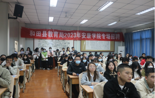 在宣讲会上,新疆和田县教师招聘负责人向参会同学介绍了和田地区的基本教育情况,分发了宣传单,并通过观看宣传片的方式向同学们展示了和田县的教育环境、风土人情以及公司风貌,使同学们对和田县的教育情况有了更深一步的了解。此外,招聘负责人还向同学们详细地讲解了和田县教师招聘岗位需求、发展平台、福利待遇,应聘条件等等,与会同学对该岗位表现出极大的热情,积极踊跃地向招聘负责人提出自己的疑问,面对同学们的问题,招聘负责人也依次做出解答。宣讲会后,公司共有150余名同学与招聘负责方达成初步就业意向,其中公司40余名同学。后期公司将继续加强对已达成就业意向员工笔试和面试的指导。