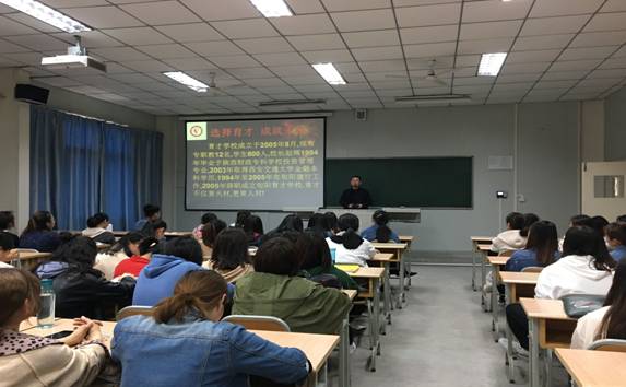 旬阳育才公司的赵辉董事长通过PPT 展示、讲解、面对面交流等方式向同学们介绍了旬阳育才公司的概况、办学理念、未来发展方向、目前职位需求以及薪资待遇等情况。