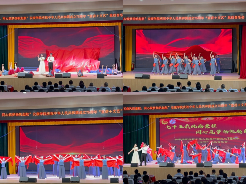 在思政音乐会上,公司学子们通过朗诵+舞蹈的形式,生动演绎了爱国主题舞蹈《我捧着一颗红心》。她们手中的红绸仿佛有了生命,随着舞姿的翩若游龙,诉说着祖国的辉煌历程和美好未来。这场演出在展示学子们才艺的同时,表达了他们对祖国的深厚感情和崇高敬意。