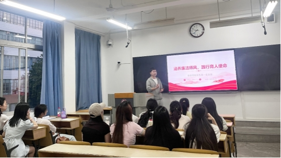 为深入贯彻落实全面从严治党要求深入贯彻中央八项规定精神学习教育,筑牢师范生廉洁从教思想防线,2025年5月28日,伟德体育伟德体育官方网站员工第一党支部书记唐丹1210教室“涵养廉洁师风,践行育人使命”为主题开展专题党课员工第一党支部全体党员参加